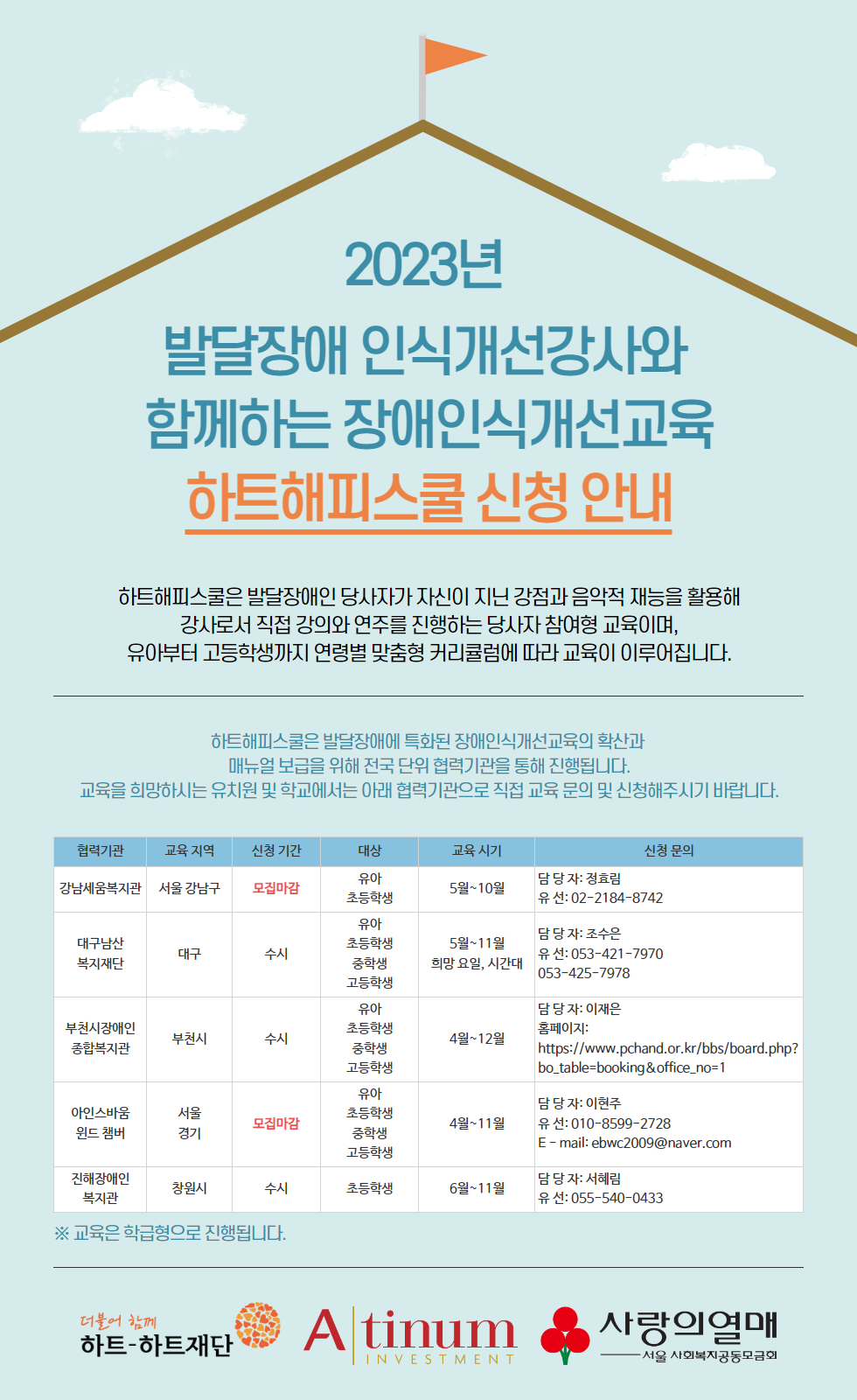 2023년 하트해피스쿨은 발달장애에 특화된 장애인식개선교육의 확산과