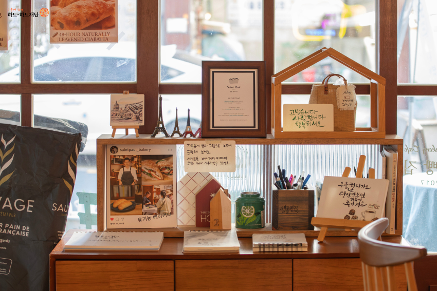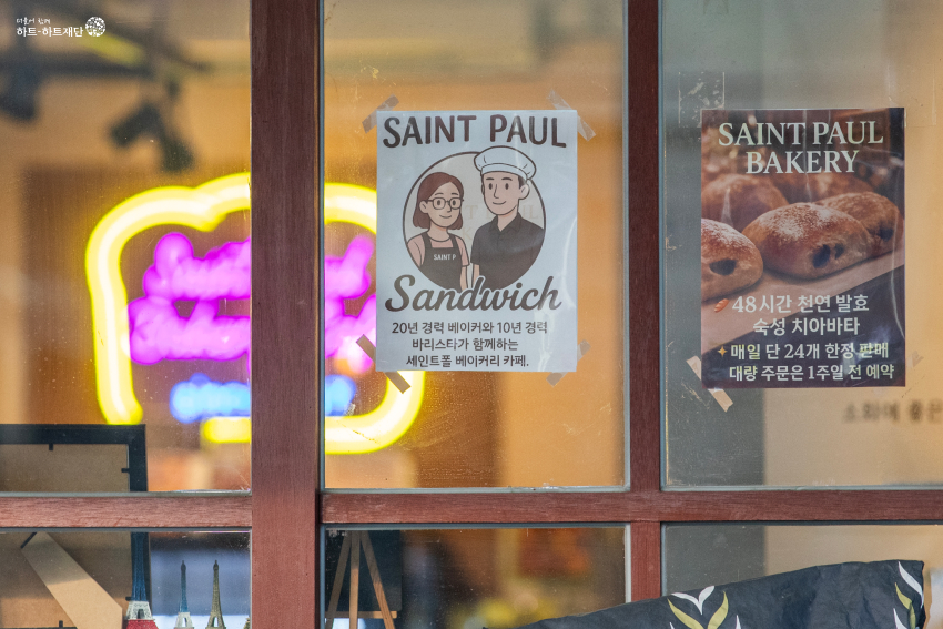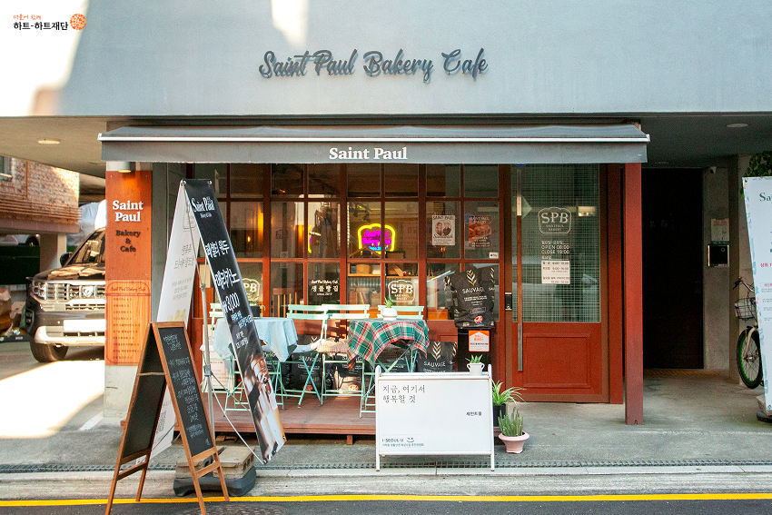 하트-하트재단의 이웃 주민인 이곳 ‘세인트 폴 베이커리 카페’는 어느 날 주변 가게들에 예쁘게 달려있는 현판을 보게 되었습니다.