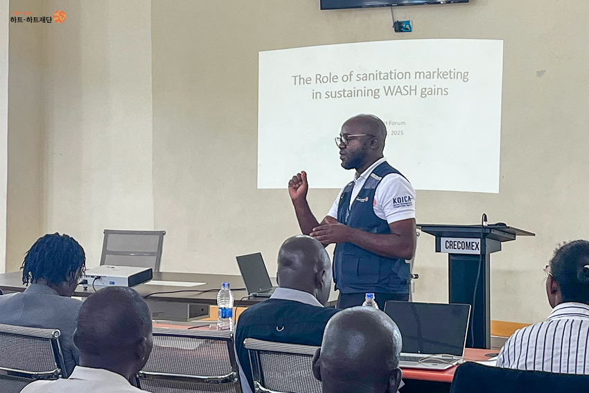 ICT를 활용한 WASH 모니터링 강화를 주제로 발표하며, 현재 WASH 데이터 관리가 NGO 중심으로 이루어지고 있어