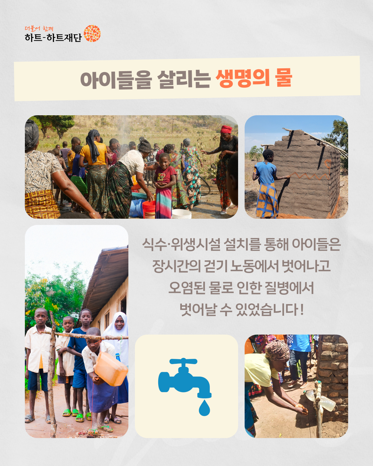 식수 · 위생시설 설치를 통해 깨끗한 물이 일상이 되며