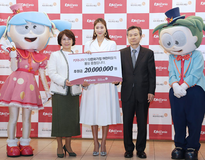 다문화가정 소외아동 지원 하트베어 나눔트리 기부금 전달식이 키자니아 중앙광장에서 진행되었습니다.