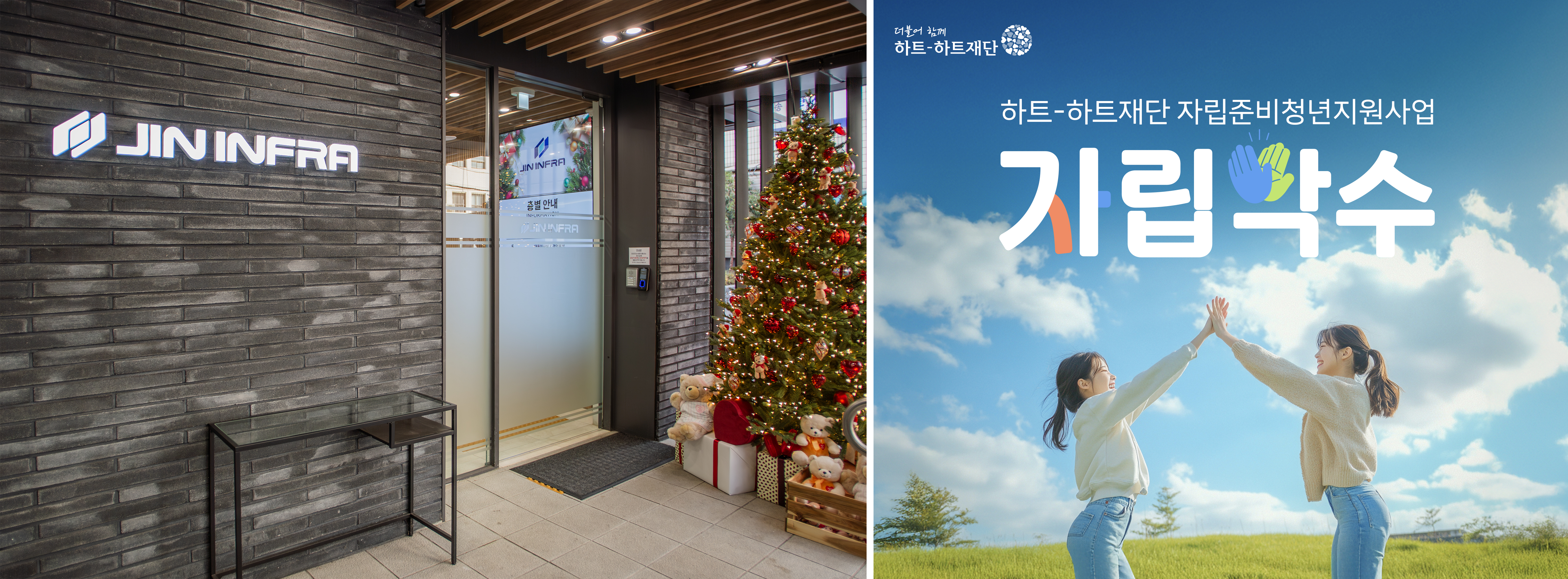 <진인프라 전경(좌측), 자립준비청년지원사업 자립박수 캠페인(우측) ©하트-하트재단>