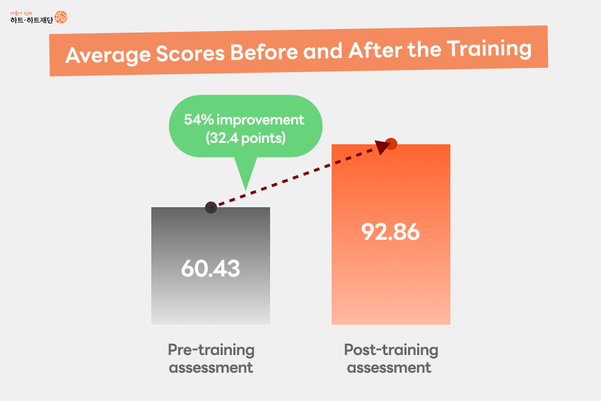 one participant who had scored only 11 before the training achieved 80 afterward — an impressive improvement of 69 points.