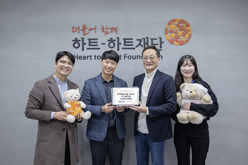 하트-하트재단 백의성 마케팅본부 팀장(왼쪽부터 두 번째), 안랩 인치범 상무(왼쪽부터 세 번째)