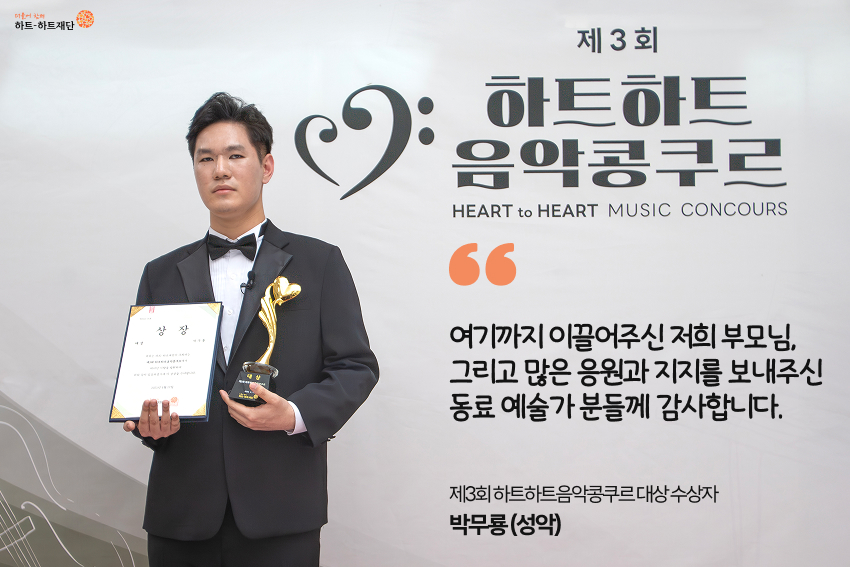 제3회 하트하트음악콩쿠르 대상은 성악 부문의 박무룡 씨가 수상했습니다.