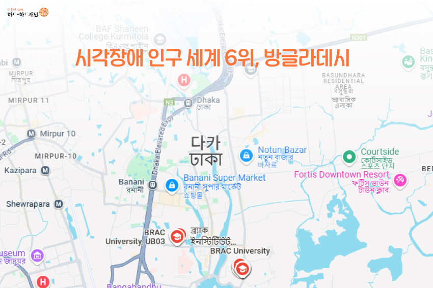 방글라데시는 세계에서 시각장애 인구가 여섯 번째로 많은 국가입니다.(2020년 기준 약 1억 6400만 명)