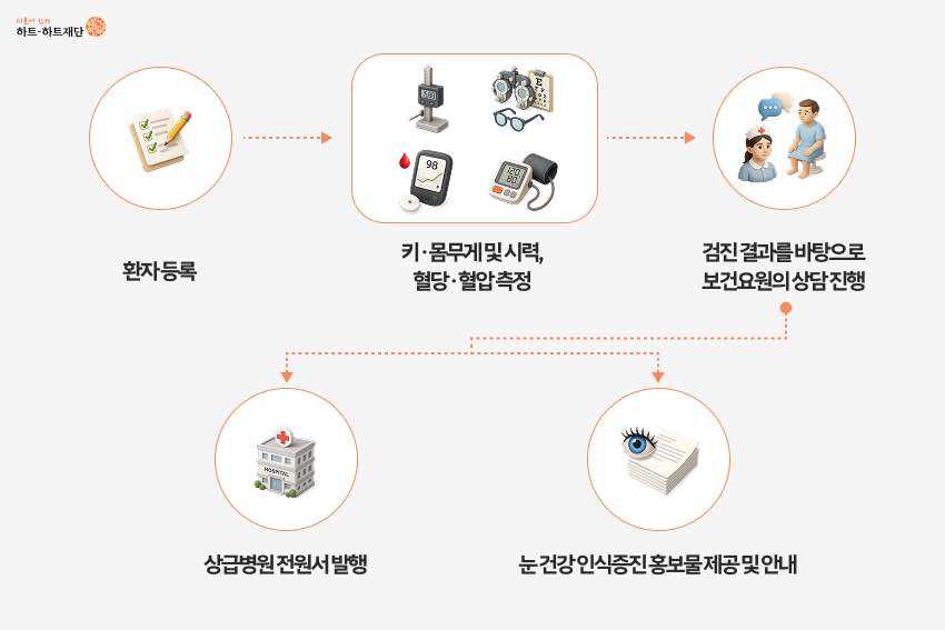 - 당뇨·고혈압 및 시력저하를 통해 당뇨성 망막병증, 백내장 등 실명을 야기하는 안질환 조기 발견