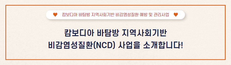 [하트-하트재단 캄보디아 지부는 한국국제협력단(KOICA)의 시민사회협력사업의 일환으로‘바탐방 지역사회기반 비감염성 질환 예방 및 관리2단계 사업(2024-2026)’을 수행 중입니다.]